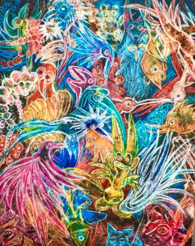 Entdecke durch Floren Tinas Werke eine einzigartige Fusion aus Kulturen, Farben und geheimnisvollen Wesen. Ihre Kunst lädt ein, in eine Welt