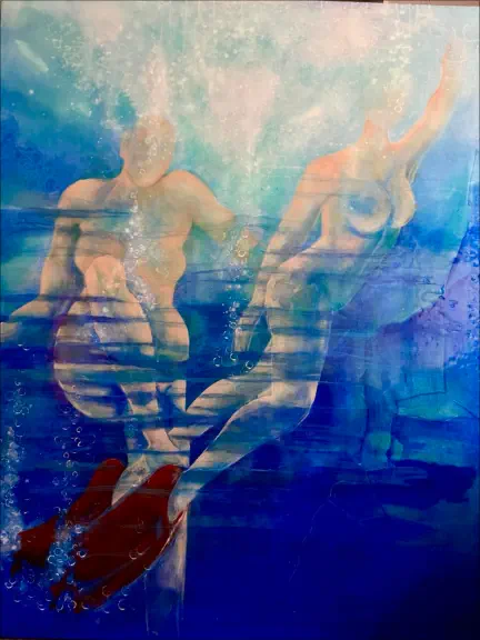 Blau bis Türkis durchzieht ihre Werke und verleiht ihnen eine unverkennbare Signatur.